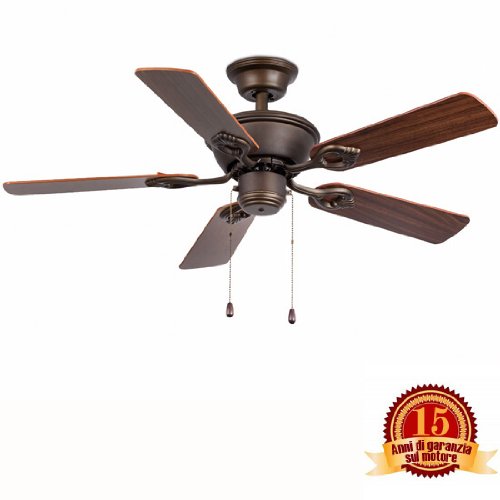 | Ventilatore da soffitto con 3 luci incluse rimovibili attacco GU10 - 5 pale - Colore MARRONE SCURO - Reversible - Comando a catenella- Telecomando non incluso ma ordinabile - Diametro 107 cm - Lampadario con pale Modello MAEWO 33400 |