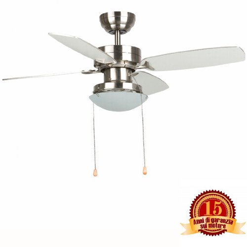 | Ventilatore da soffitto con luce centrale attacco E27 - 4 pale - Reversible - Colore NIKEL OPACO - Diametro 91 cm - Comando a catenella - Telecomando non incluso ma ordinabile - Lampadario con pale Modello EGADI 33358 |